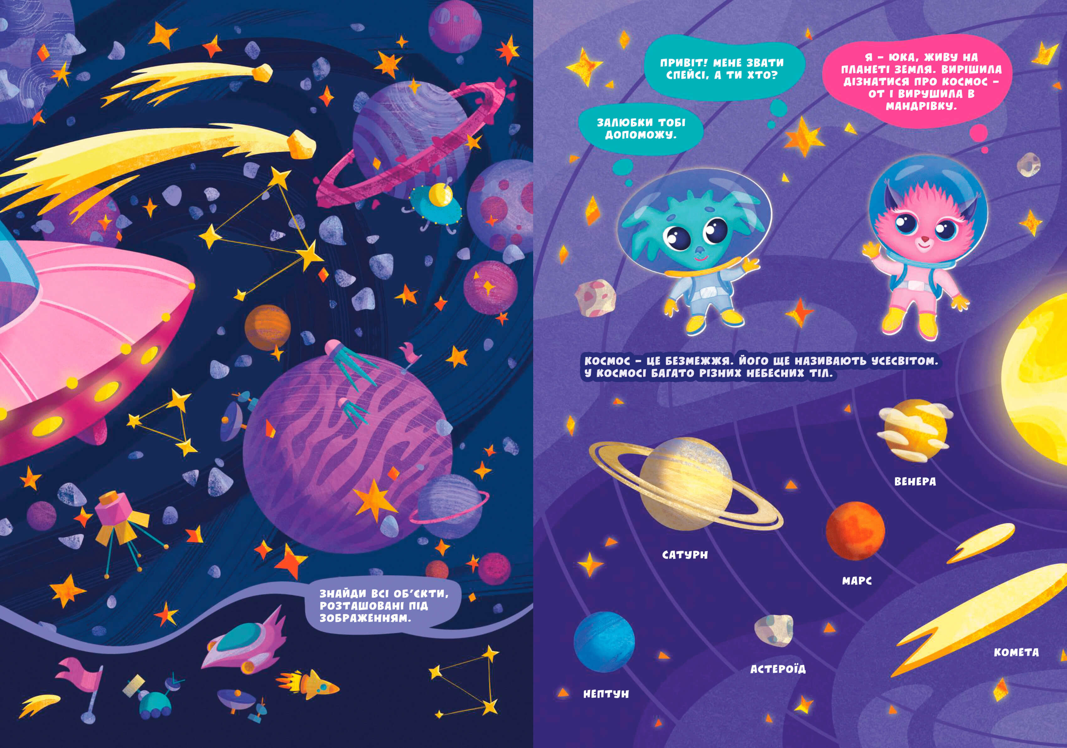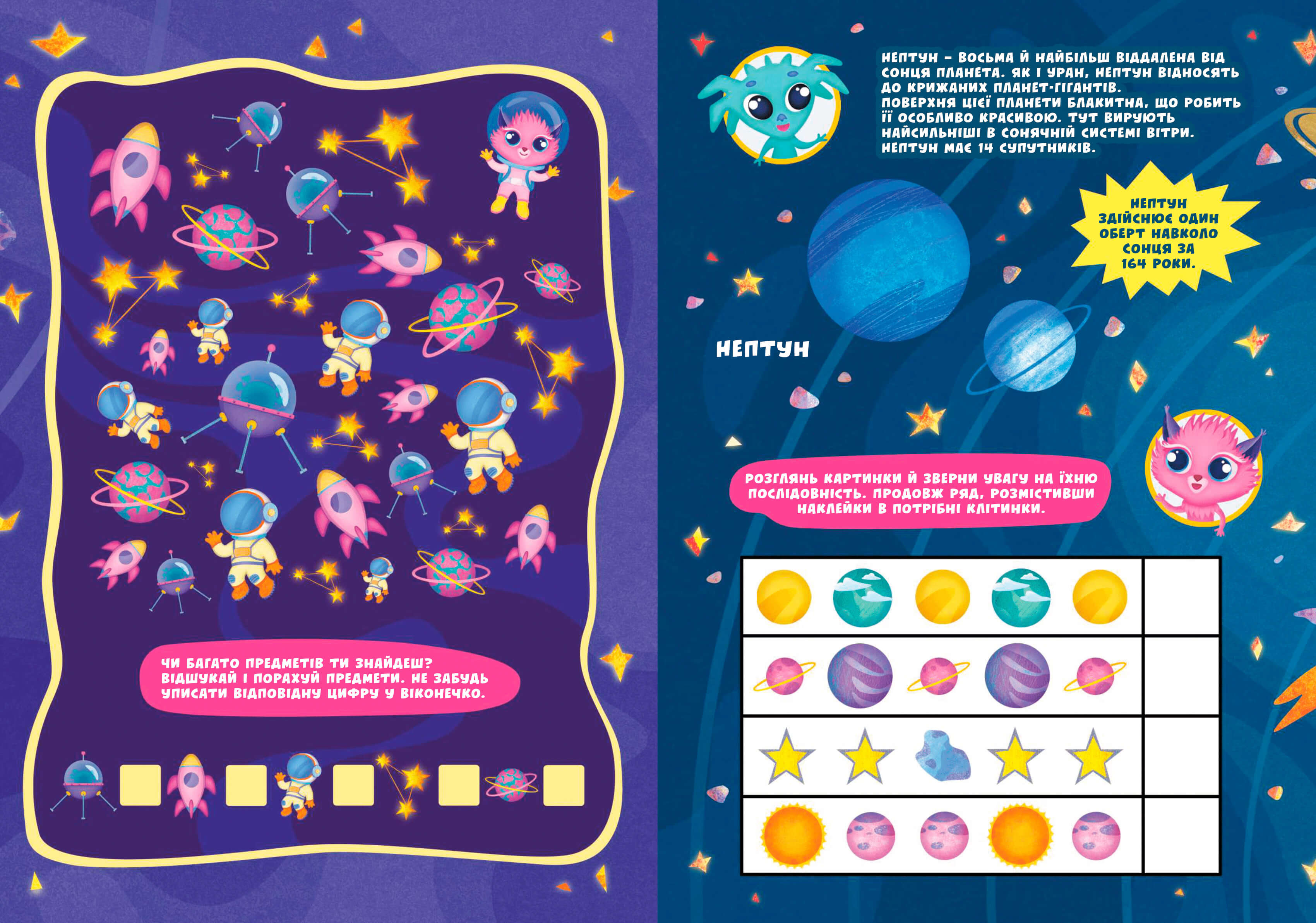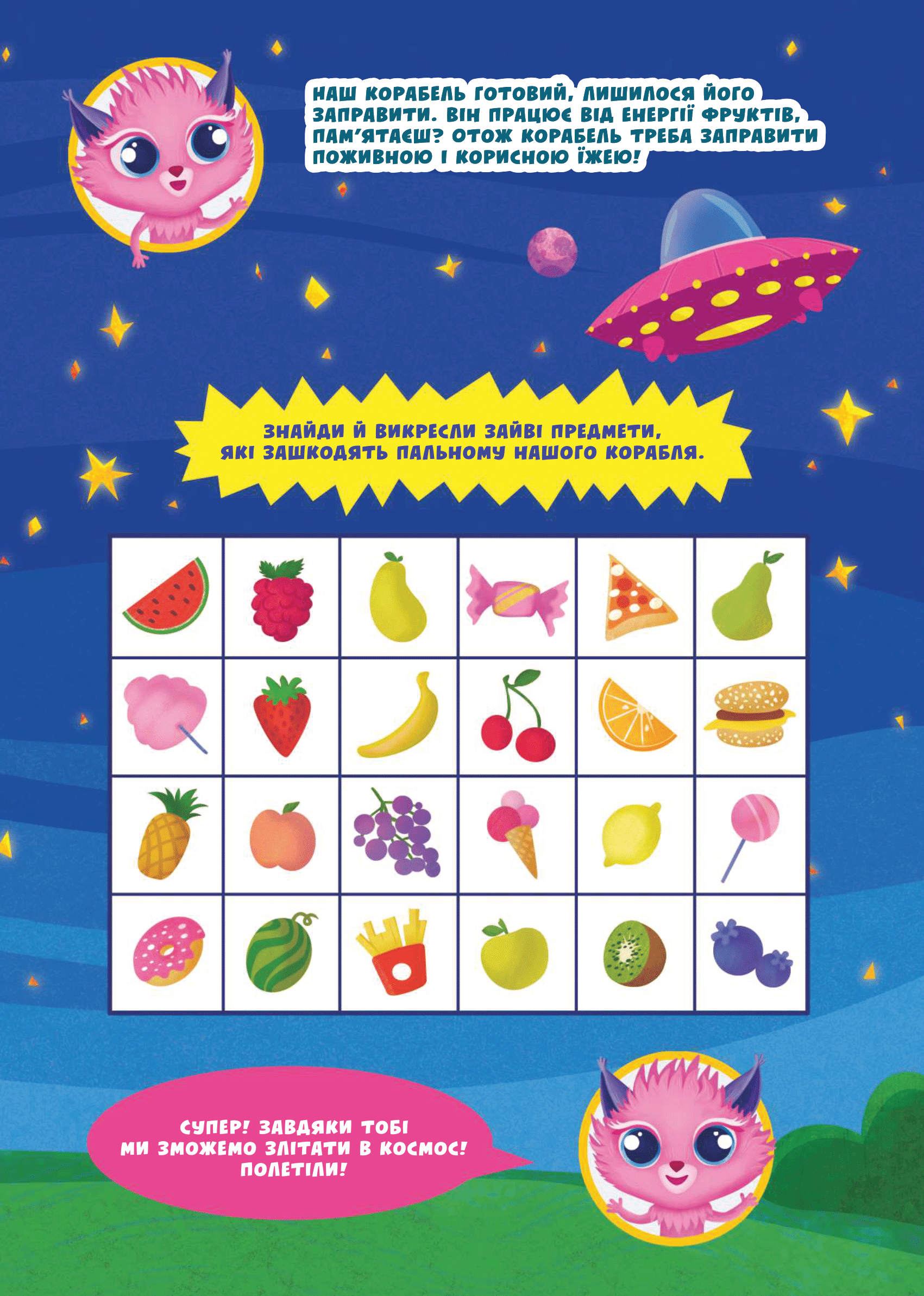 цікаві завдання, як-от лабіринти, розпізнавання форм і кольорів, послідовне розміщення, знаходження відмінностей тощо, що допомагає в розвитку дитячого інтелекту. Також журнал знайомить дітлахів із навколишнім світом і цікавими фактами, навчає розмірковувати й фантазувати.